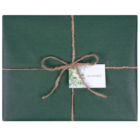 Nechte nás zabalit Váš dárek! Elegantní tmavě zelený papír jsme převázali provázkem a ozdobili kartičkou s nápisem ALL THE BEST. Ideální pro každého, komu chcete popřát všechno nejlepší.
